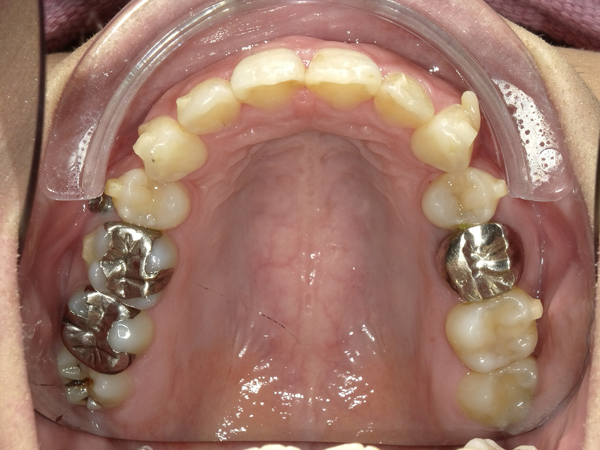 真面目にマウスピースを使用してくださりとても順調に進んでおります。矯正を開始して約半年で抜歯スペースはほぼ閉じてきました。手術中に前から4番目の歯を一緒に抜歯をしていただきなるべく早い段階でマウスピース矯正を開始されました。抜歯プランですので通常ですと長い期間がかかりますが光加速装置を併用しているため期間を半分ほどまで短縮できております。まだ油断はできませんが引き続き一緒に頑張っていきましょう!