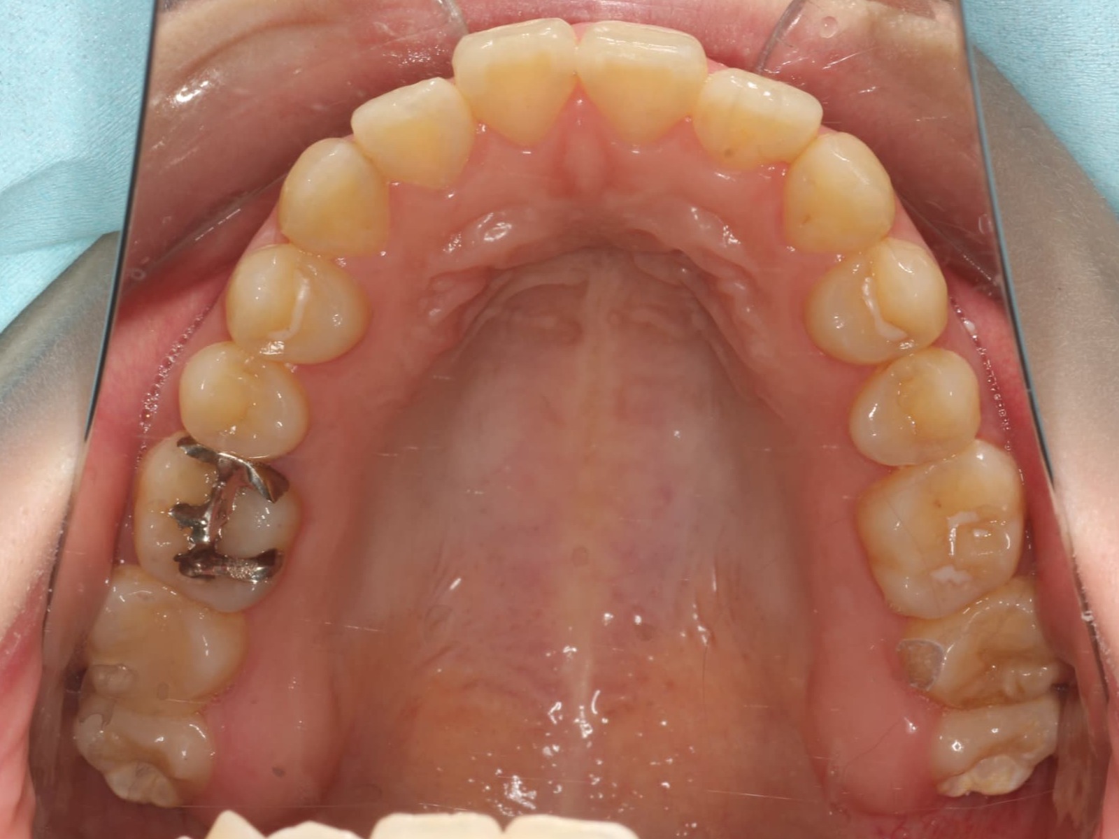 真面目にマウスピースを使用してくださりとても順調に進んでおります。矯正を開始して約半年で抜歯スペースはほぼ閉じてきました。手術中に前から4番目の歯を一緒に抜歯をしていただきなるべく早い段階でマウスピース矯正を開始されました。抜歯プランですので通常ですと長い期間がかかりますが光加速装置を併用しているため期間を半分ほどまで短縮できております。まだ油断はできませんが引き続き一緒に頑張っていきましょう!